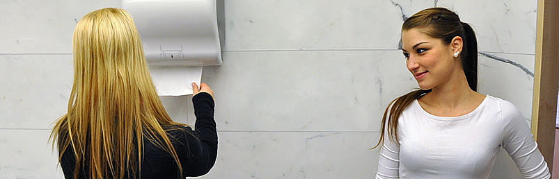 Der Auto-Cut-Spender von BHS ist ein mechanischer - berührungsloser Papierrollenspender in modernem Design.