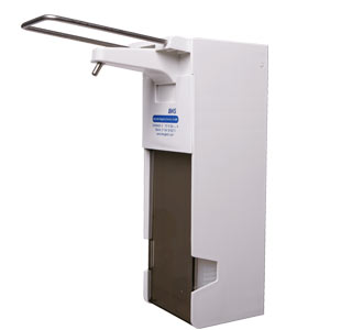 Der Langarmspender mit hygienischer Ellenbogenbetätigung ist ideal für den Einsatz in allen hygienerelevanten Bereichen wie Kliniken, Arztpraxen, Lebensmittelbranche usw.